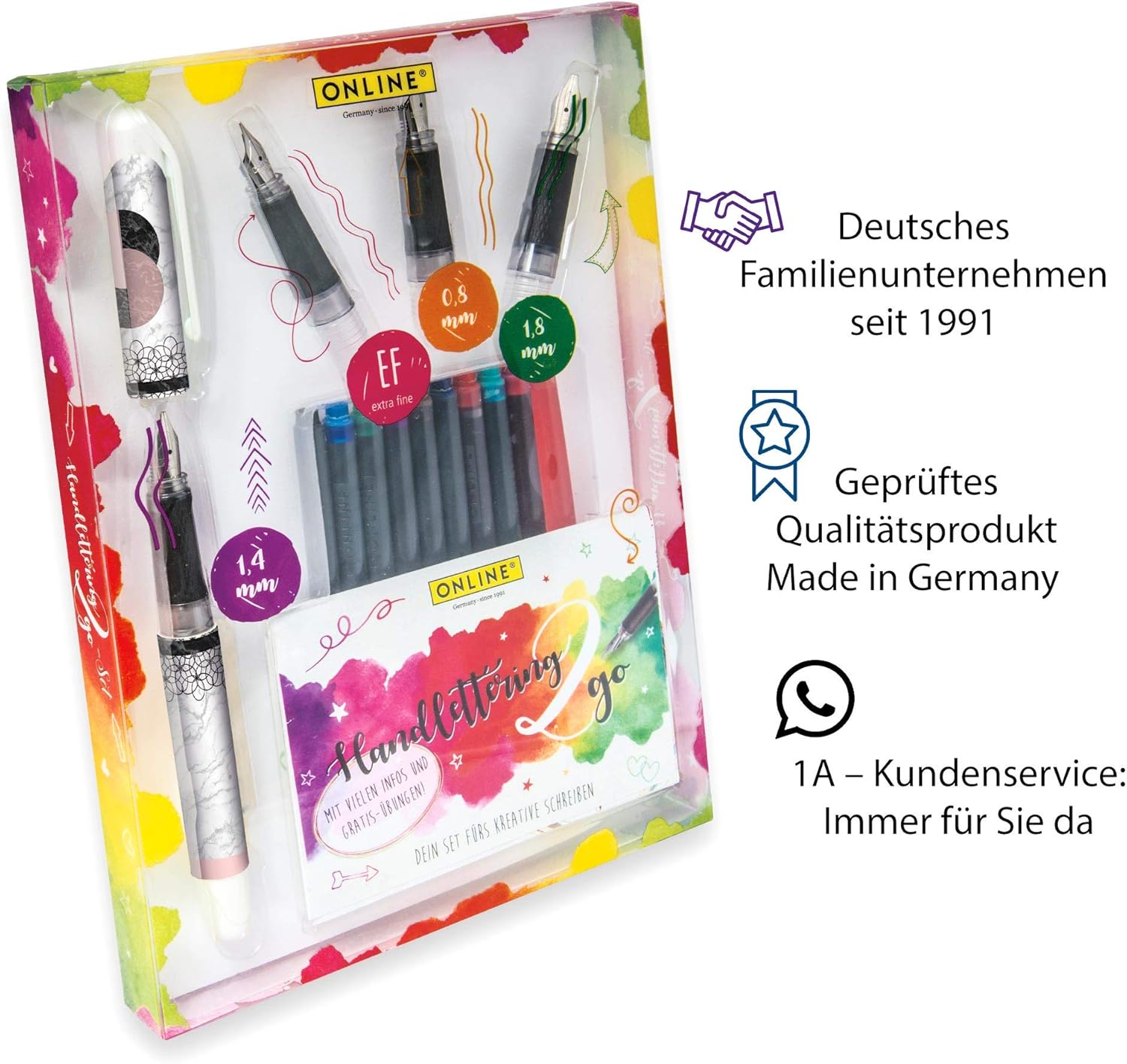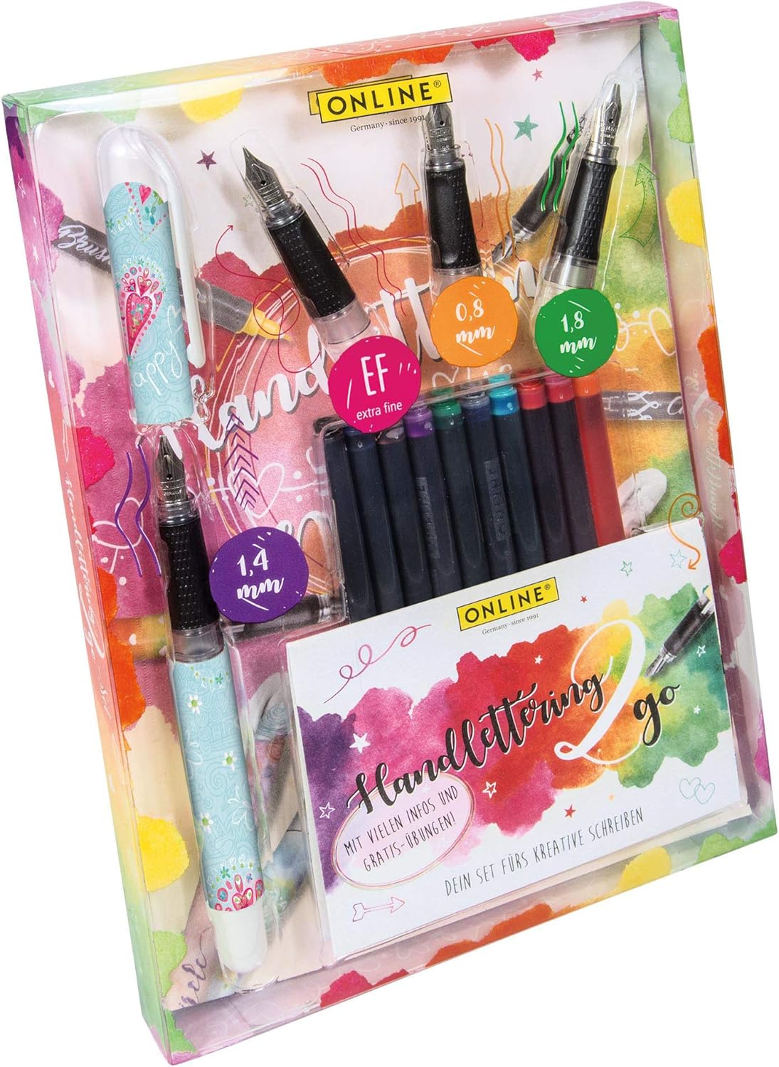 Online Handlettering 2 Go Schonschreib Set Inkl 1 4 Mm Kalligraphie Fuller Drei Federstarken 10 Kombi Patronen In Verschiedenen Farben Inkl Booklet Mit Ubungen Magazin Be Happy Amazon De Burobedarf Schreibwaren