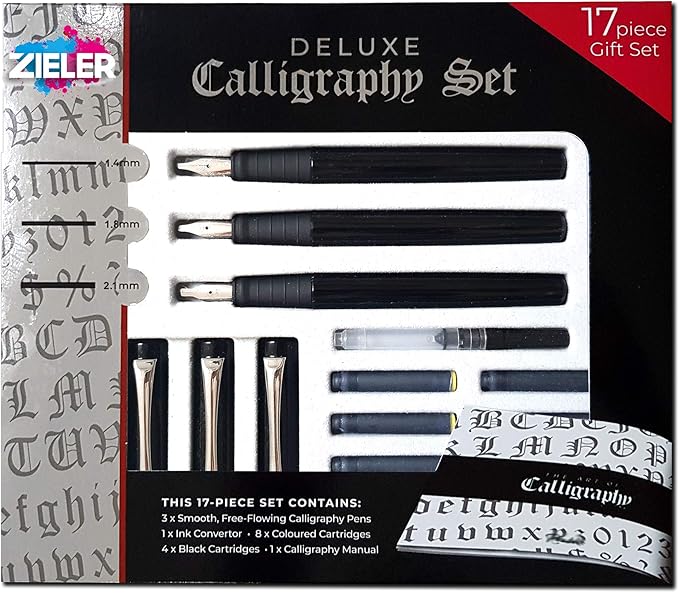 Kreativ set die kunst des zeichnens kalligraphie. Includes calligraphy pens calligraphy nibs ink cartridges introduction booklet and exercise booklet packaging may vary.