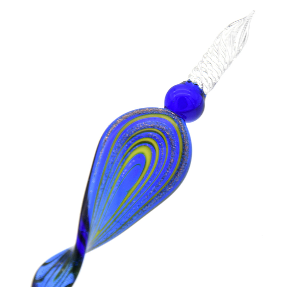 Glasfeder Kalligraphie In Blau Mit Gedrehtem Glas 035 Eur 13 00 Picclick De