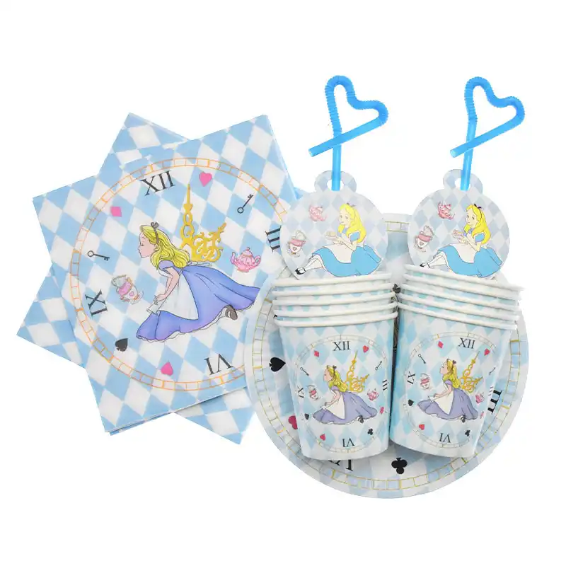 Alice Im Wunderland Thema Geburtstag Party Geschirr Set Tasse Platte Banner Kinder Madchen Kinder Tag Baby Dusche Hochzeit Dekoration Party Einweggeschirr Aliexpress